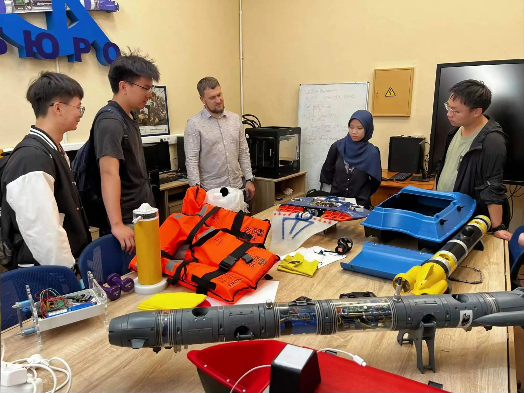 7月9日,参访团队来到了圣彼得堡国立海洋技术大学的另一个校区。在此,参访团队分为两个小组,依次参观了校内的工训中心和博物馆。工训中心内的焊接技术令观摩同学大开眼界,同学们与带队老师针对器械用途和材料设计方面展开积极讨论,展现了西工大学生的求知风范;博物馆中一艘艘船舶模型等比例复刻俄罗斯历存大船的船舶模型引领同学们历经了圣海大船舶建造悠久且曲折的历史。当日下午,参访团队自行分为两人一组,在圣海大校内机房使用俄罗斯本土的建模软件进行了建模与3D打印的任务,同学们经过相互合作与老师的指导,成功打印出了小船的模型。经过一天的行程,同学们打开了国际视野、培养了团队合作能力并且感受到了中俄两国的文化差异。